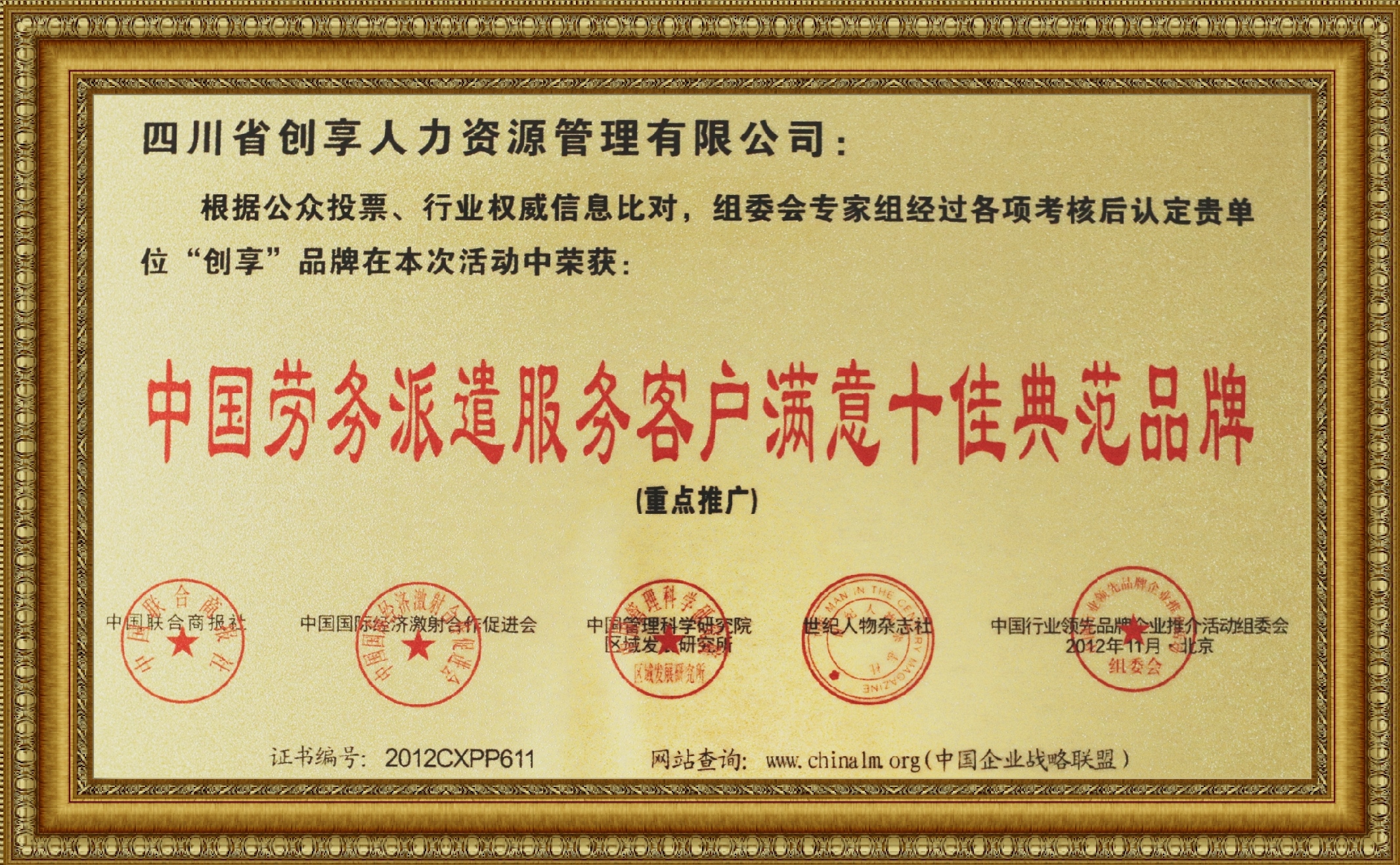 四川省創(chuàng)享人力資源管理有限公司成立于2010年,位于天府之國(guó)成都,目前已發(fā)展成為西南地區(qū)的藍(lán)領(lǐng)人力資源外包服務(wù)供應(yīng)商。公司已為三百多家客戶提供相應(yīng)的人力資源外包服務(wù),行業(yè)涉及倉儲(chǔ)物流、電子信息、新能源、交通運(yùn)輸、快銷零售、金融地產(chǎn)等15個(gè)行業(yè),外包員工規(guī)模近萬人。為貼近客戶、快速響應(yīng)客戶需求,在郫縣、崇州、雙流、龍泉、金堂、新都、溫江、宜賓、重慶、德陽等地均建立有服務(wù)中心。