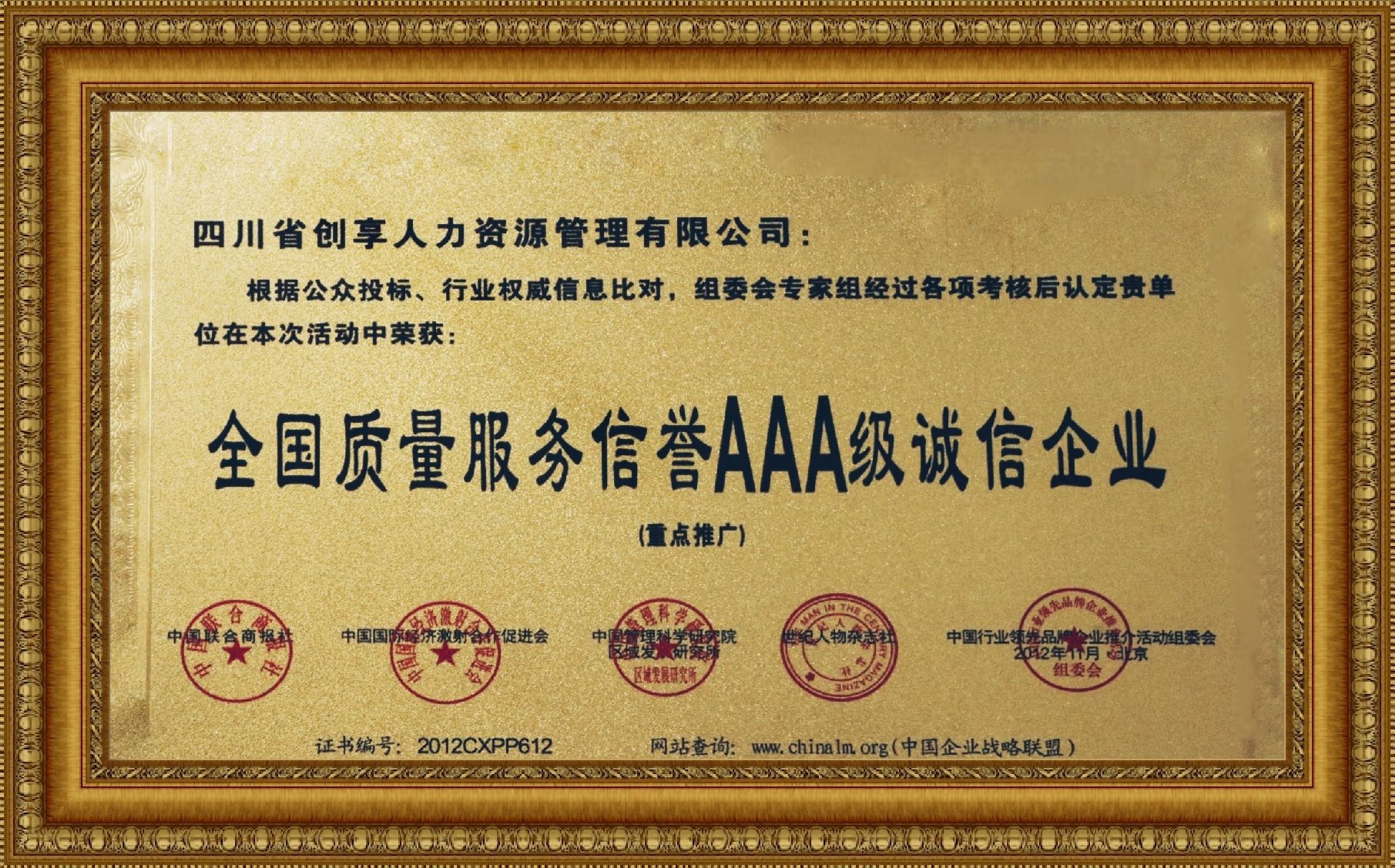 全國(guó)質(zhì)量服務(wù)信譽(yù)3A級(jí)誠(chéng)信企業(yè)